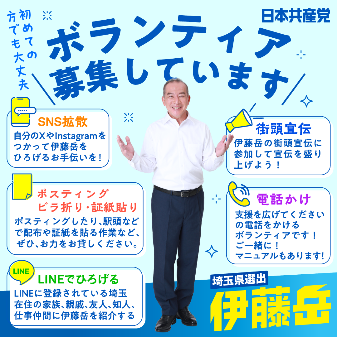 伊藤岳の街頭宣伝に参加して宣伝を盛り上げよう!